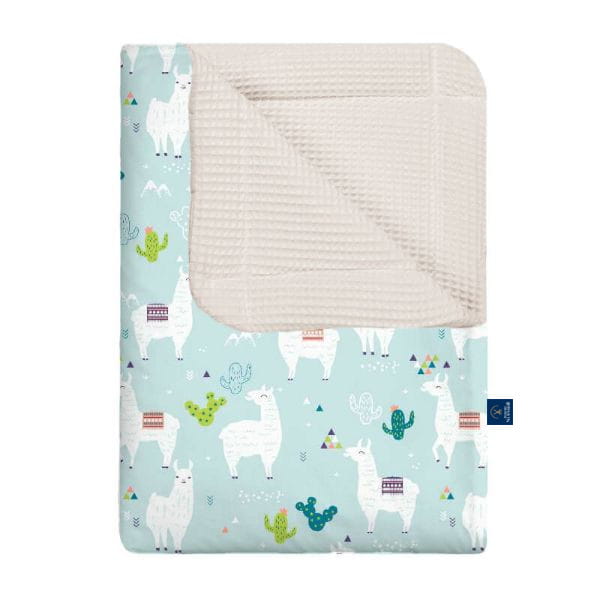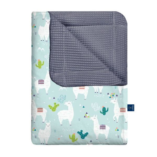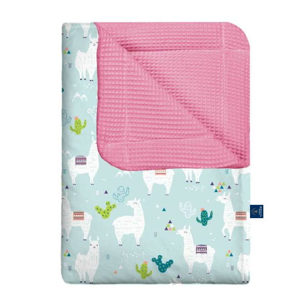 - Kocyk jest dwustronny, wybierz sama wzór bawełny i kolor drugiej strony wafelka.