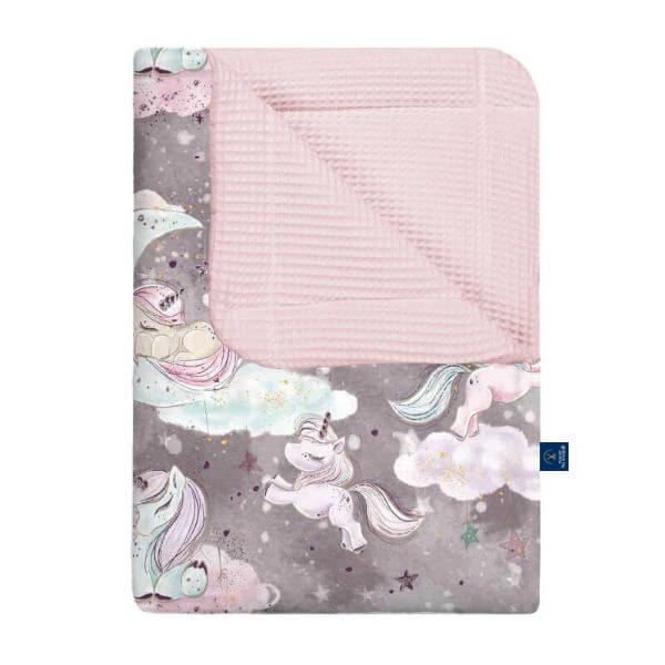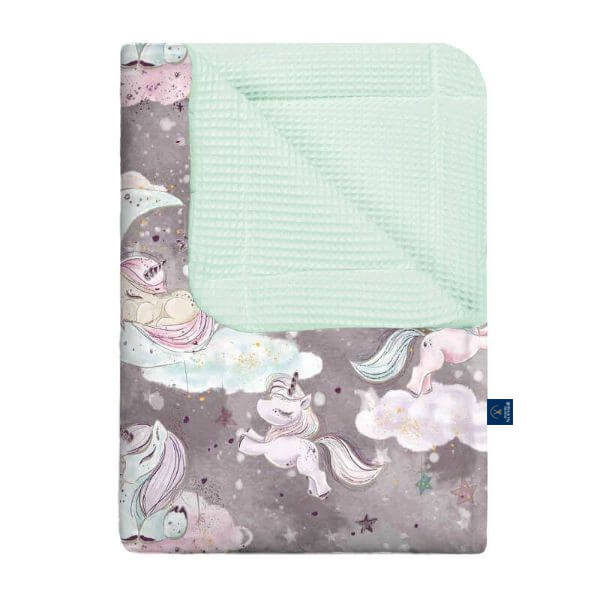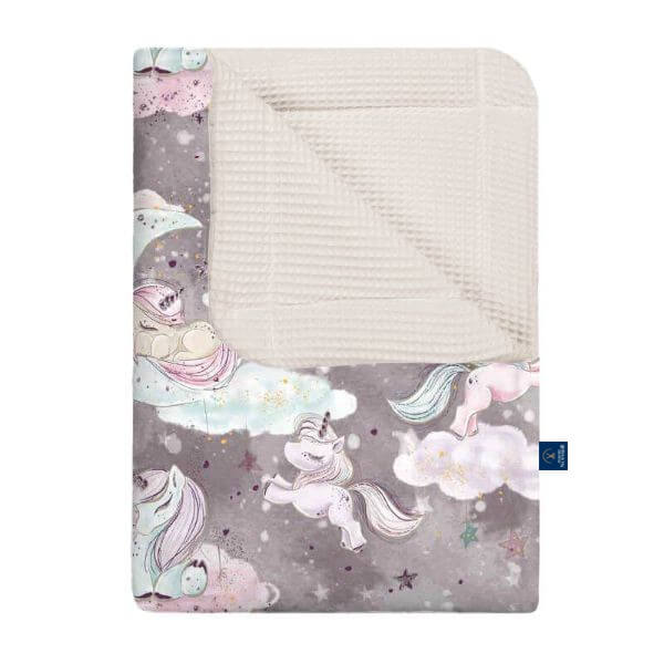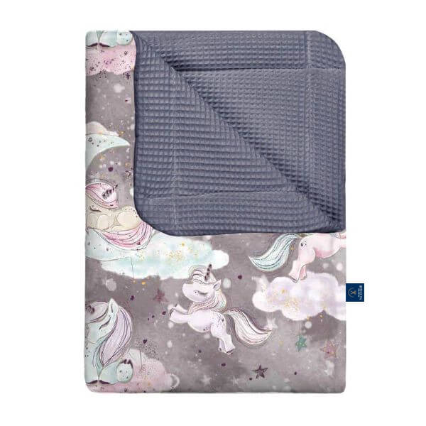Kocyk wafel w jednorożce szare